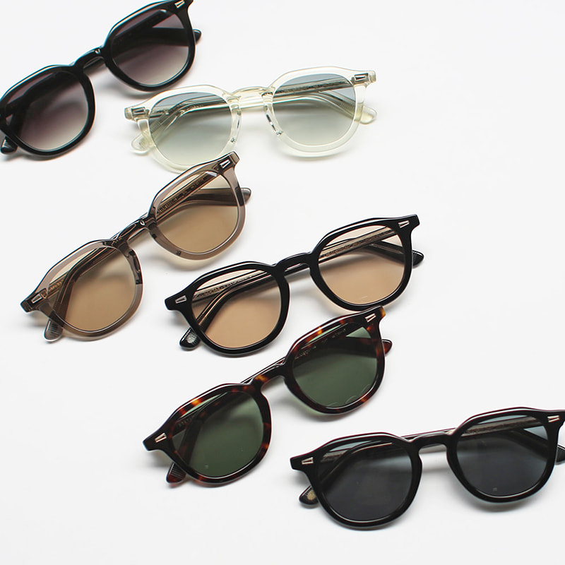 ウェリントンとクラウンパントの中間的なレンズシェイプとホーンリムを融合させたサングラス。