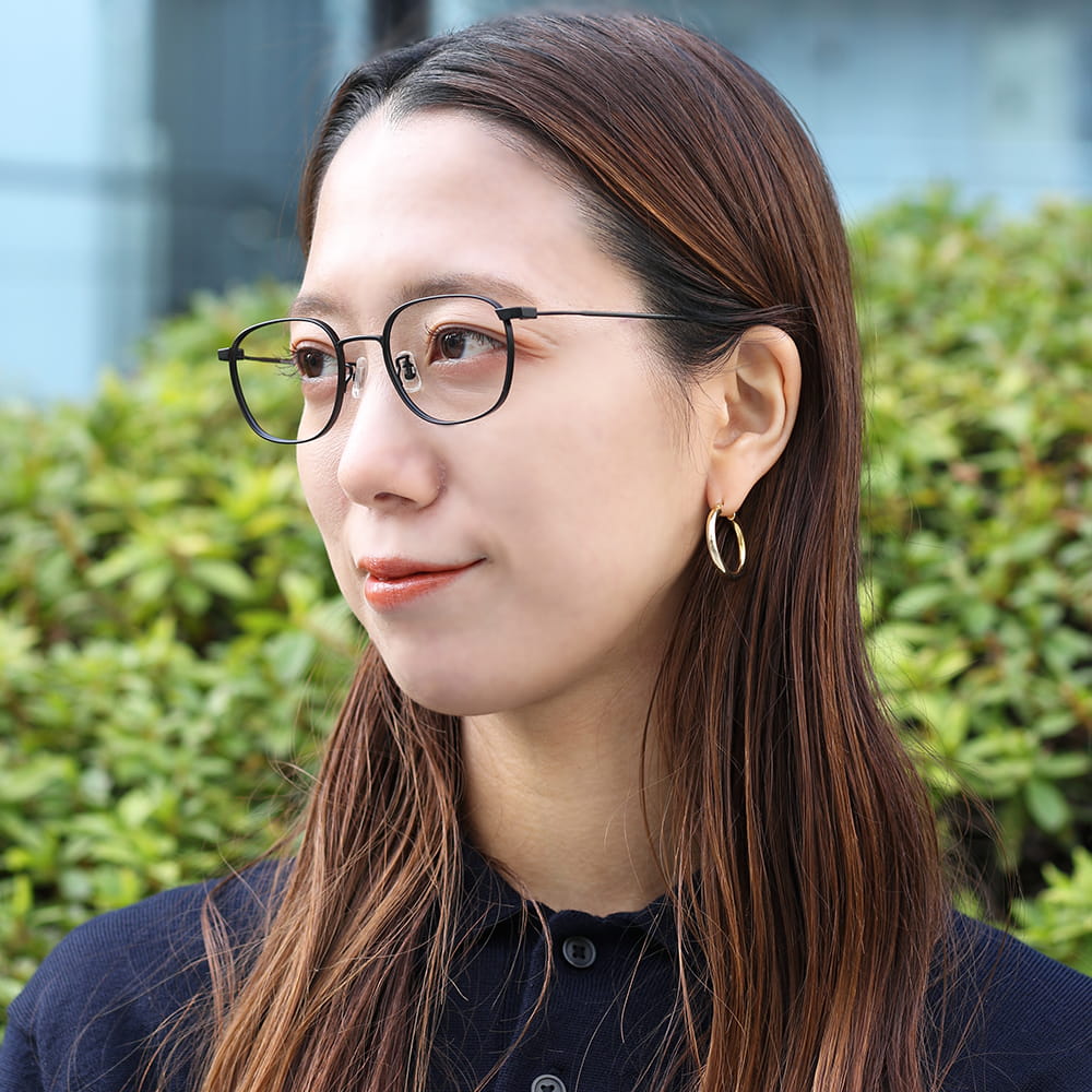 すっきりとした佇まいのシンプルなメタルフレーム。