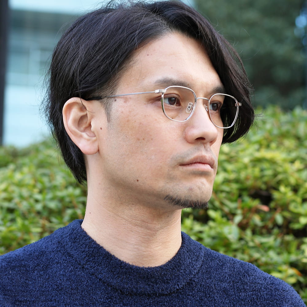すっきりとした佇まいのシンプルなメタルフレーム。
