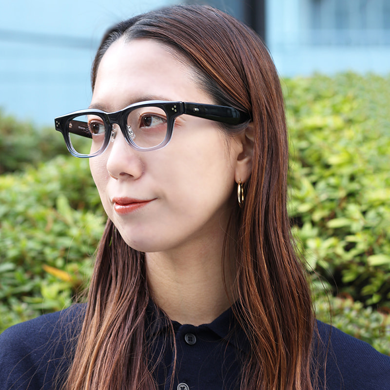 Highcount acetateをフロントに使用したボリューム感のあるウェリントン型のモデル。