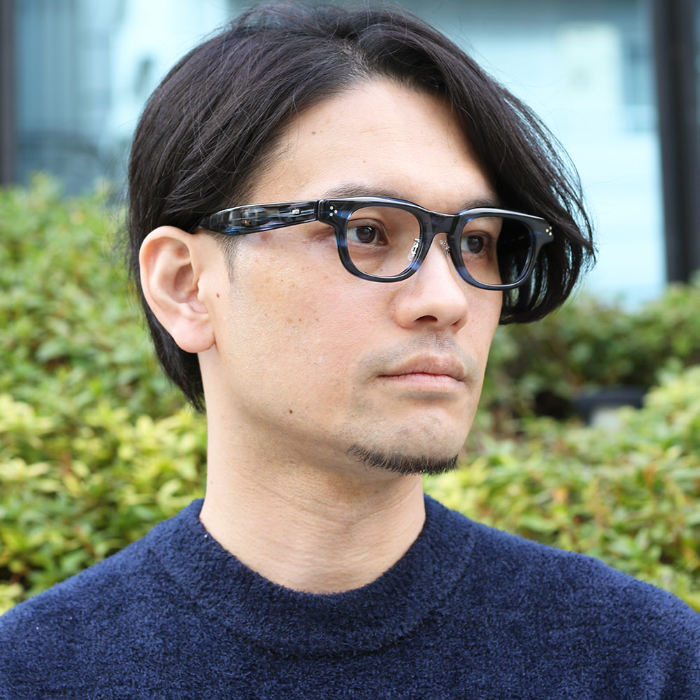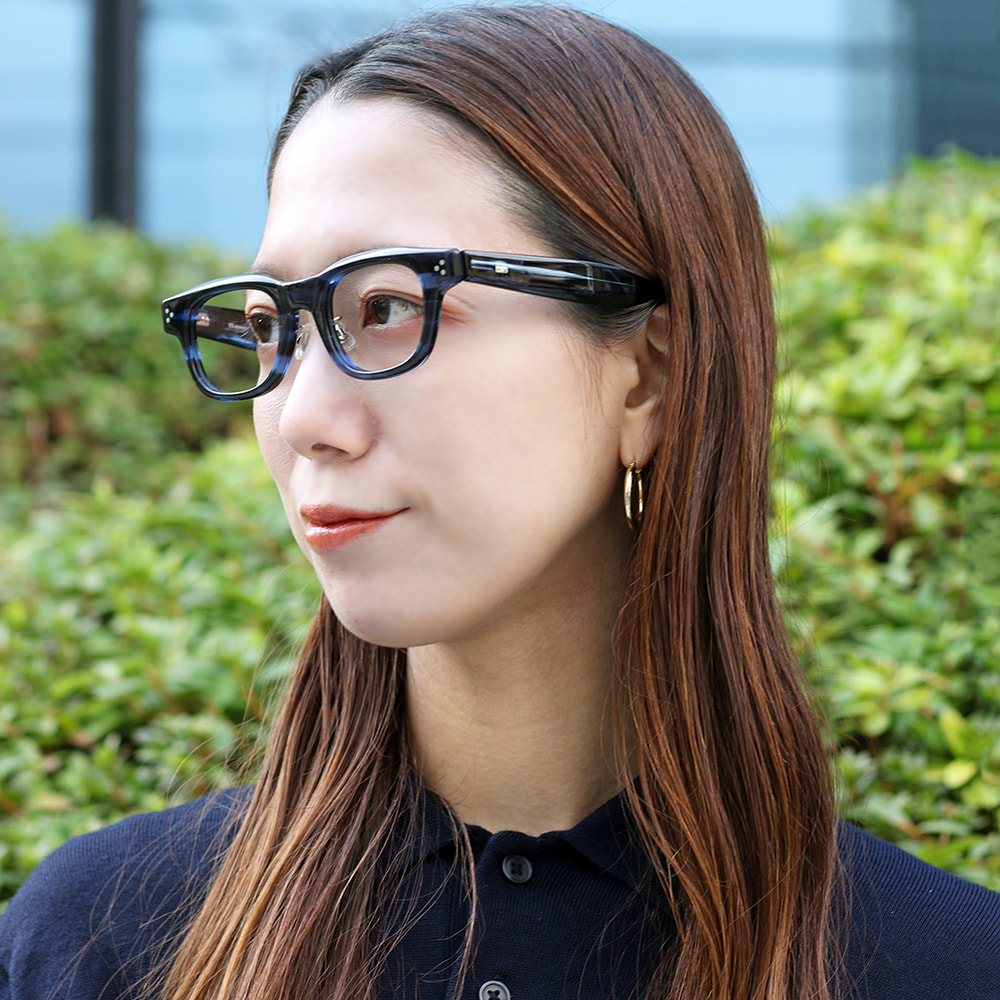 Highcount acetateをフロントに使用したボリューム感のあるウェリントン型のモデル。