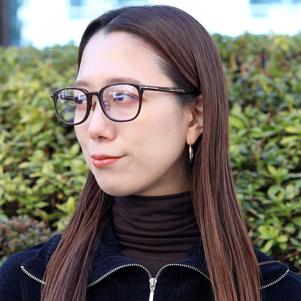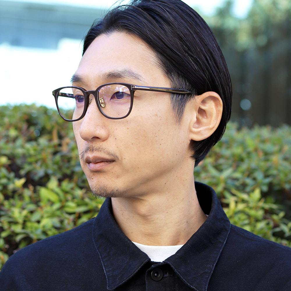 ウェリントンをベースに丸みをもたせた全体的に細身ですっきりとした印象のフレーム。