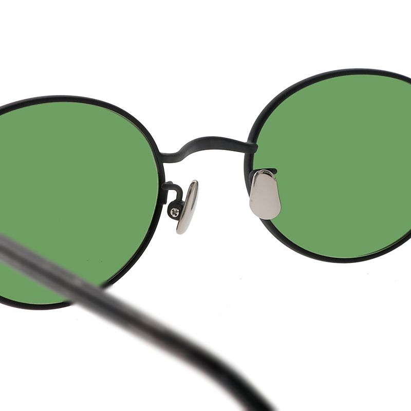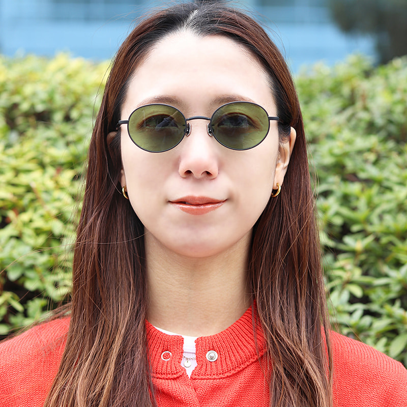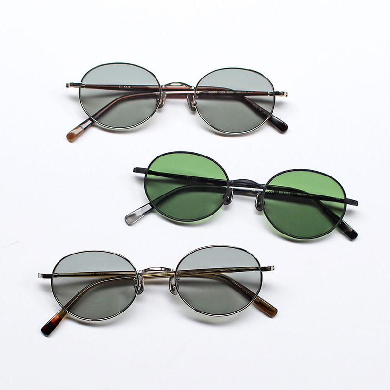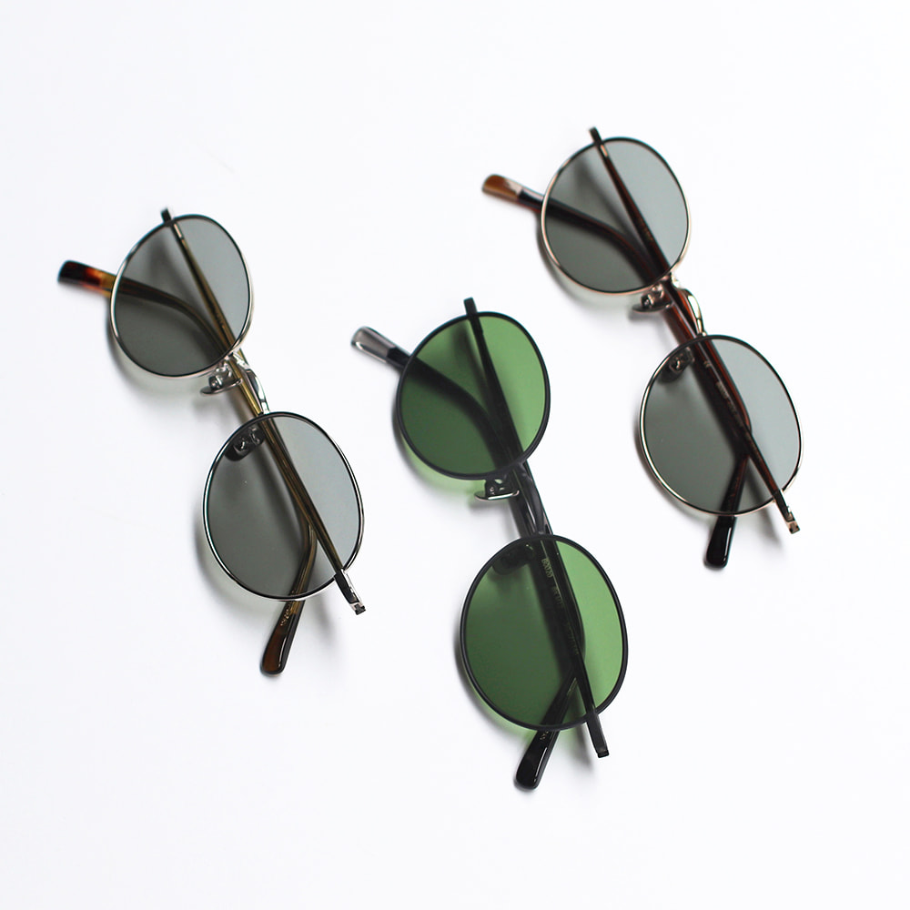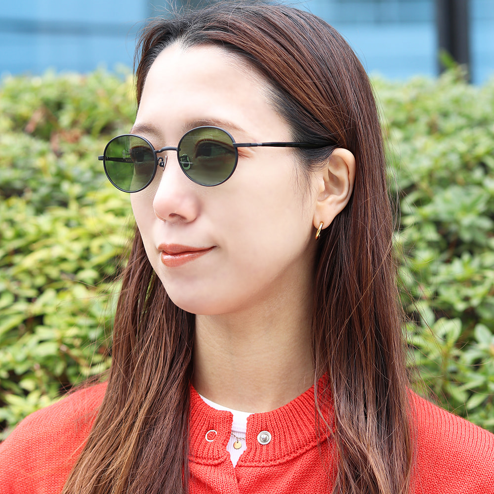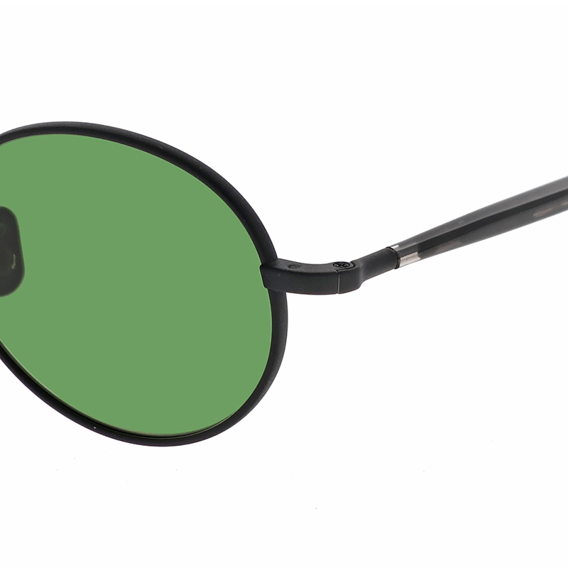 全体的に細身で柔らかな印象のオーバルシェイプサングラス。
