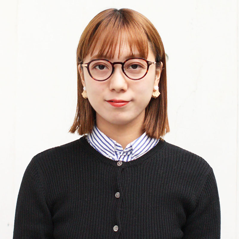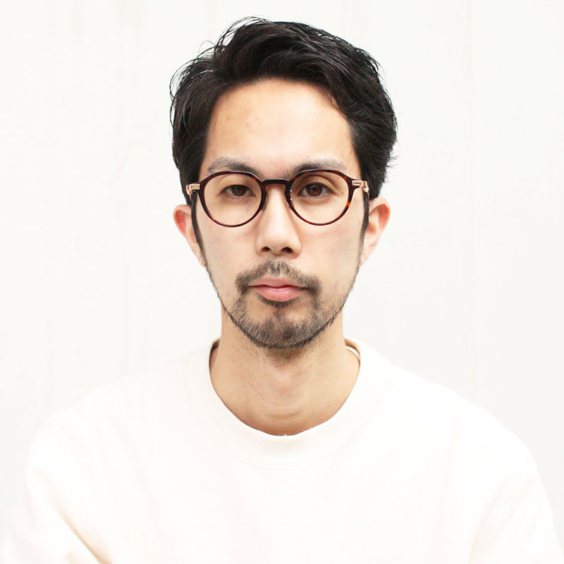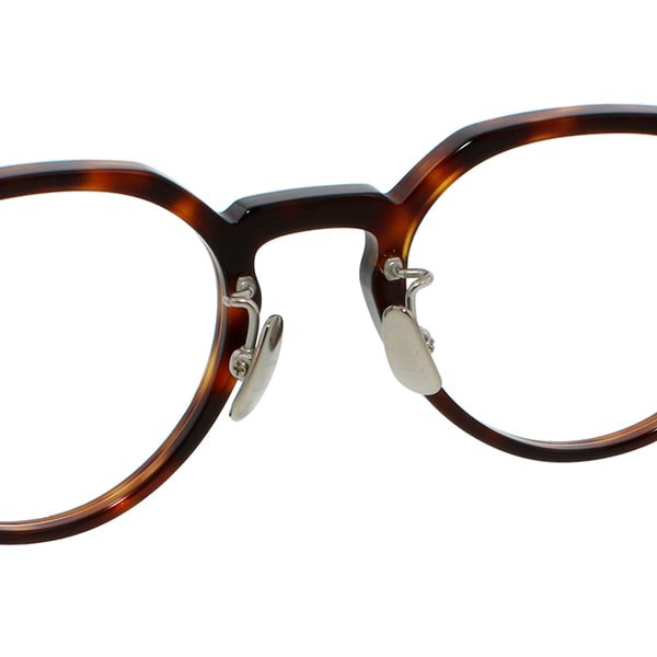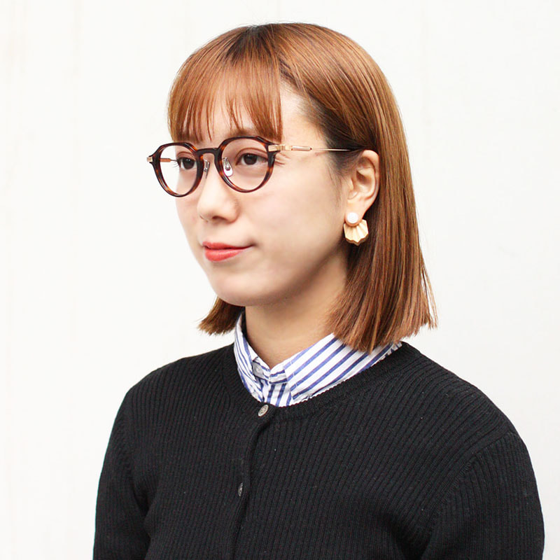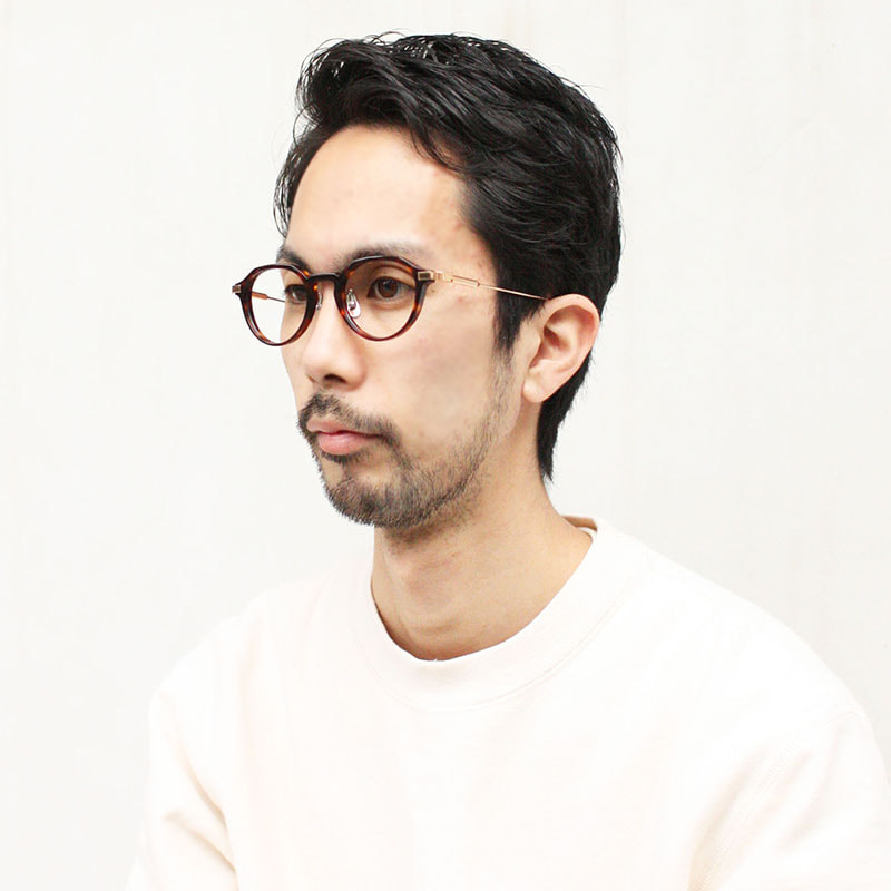 繊細さを感じさせるクラウンパント型プラスチックフレーム。男女問わずかけられる1本。