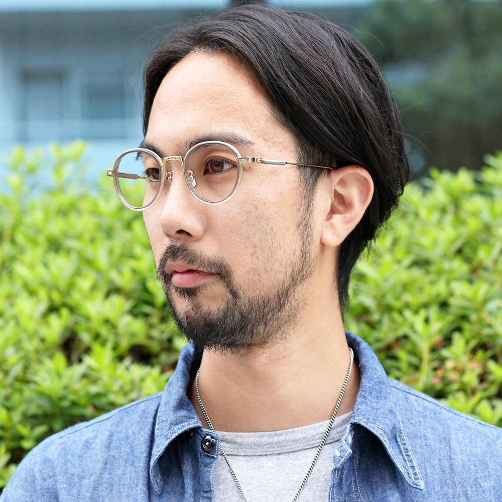 メタルのクールさとアセテートの柔らかさが共存するラウンドフレーム。