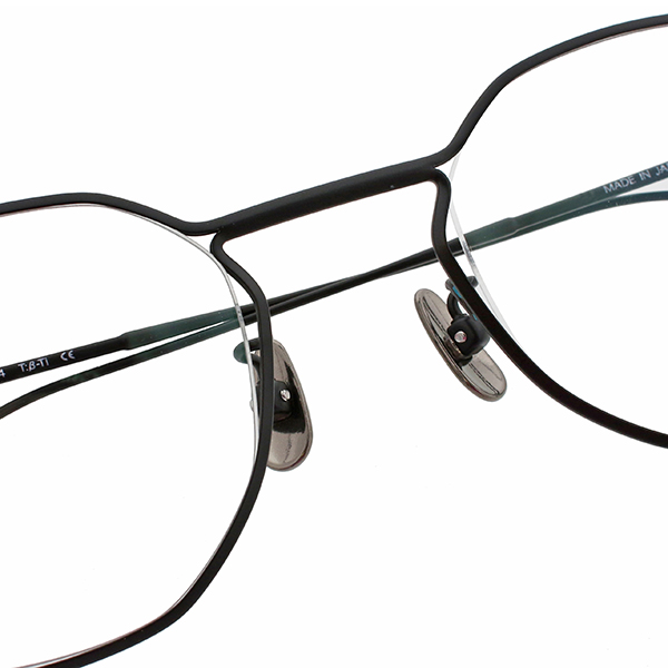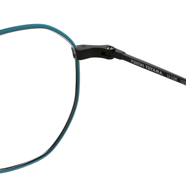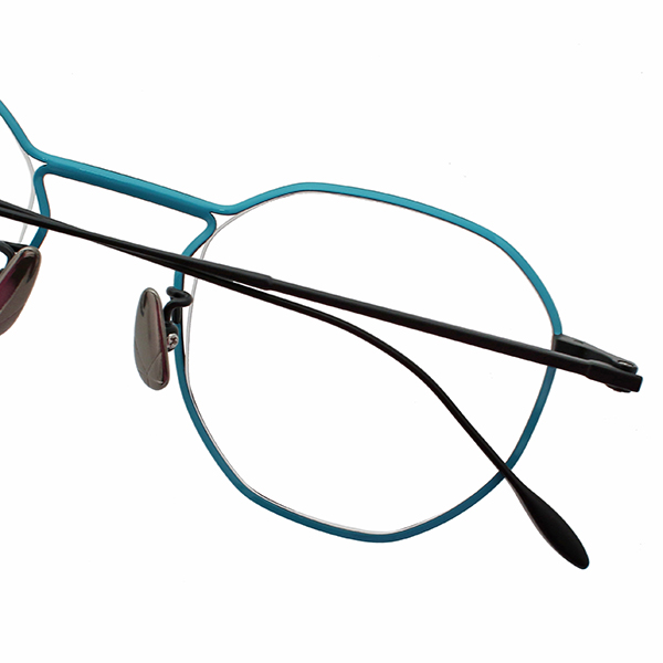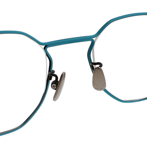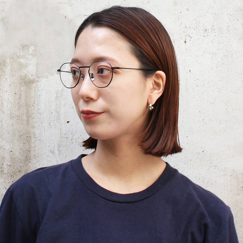 エッジの効いた多角形シェイプが特徴的なメタルフレーム。