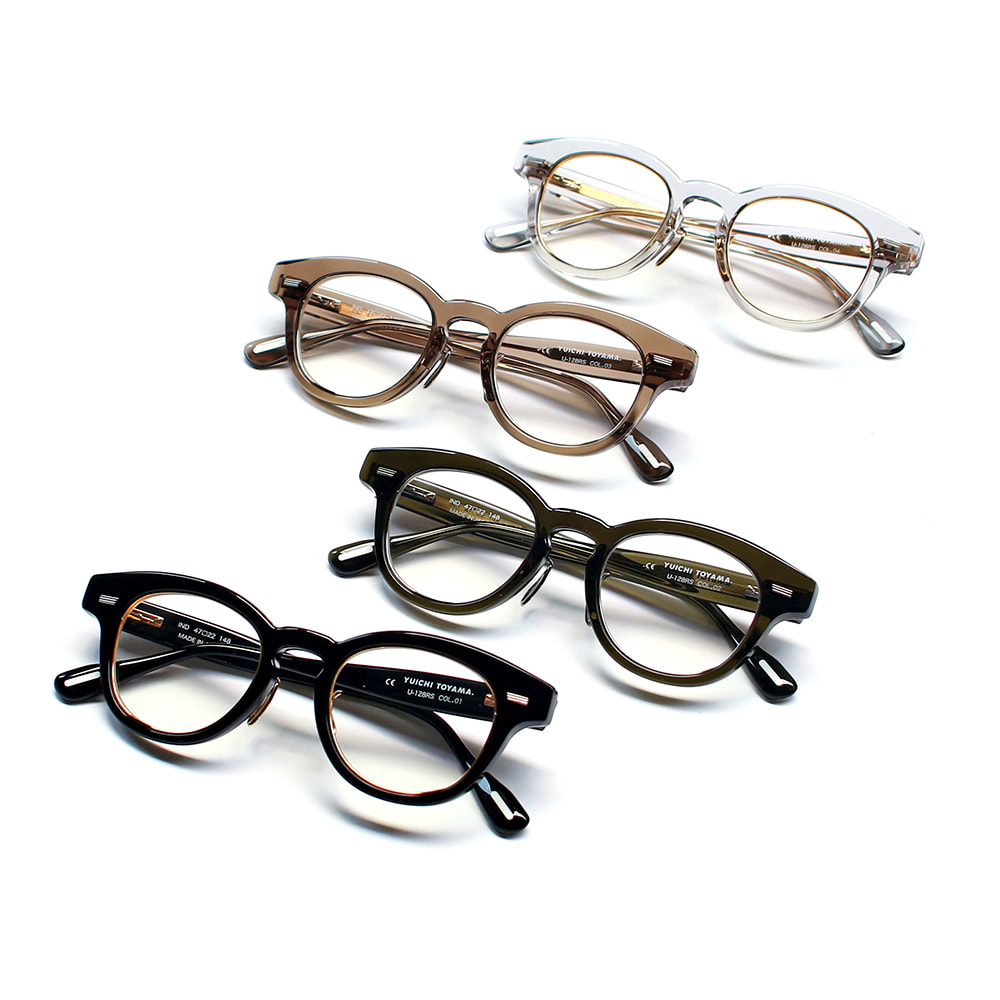 全体的にボリュームと重厚感のある太めのセルフレーム「U-128」をアップデートしたモデル。