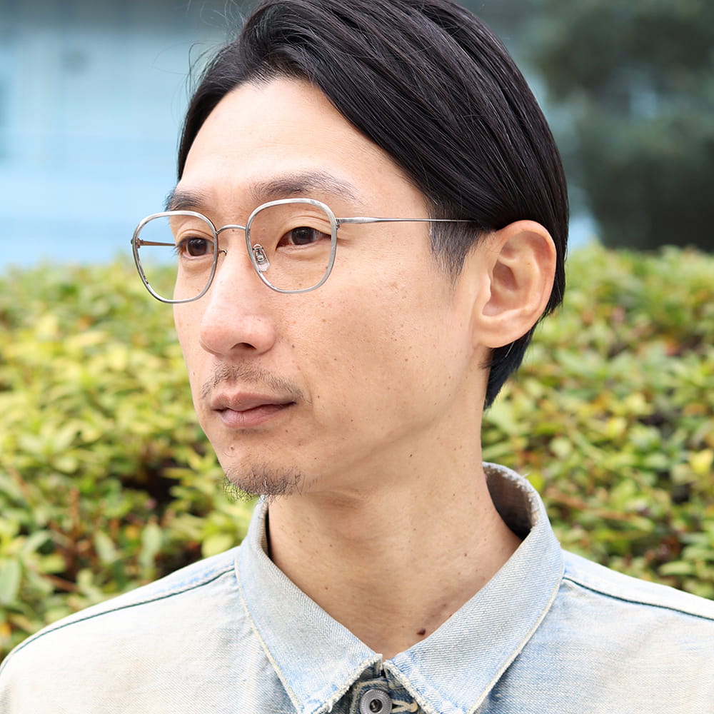 「Minotaur」のスクエアシェイプをカットリムで表現したメタルフレーム。