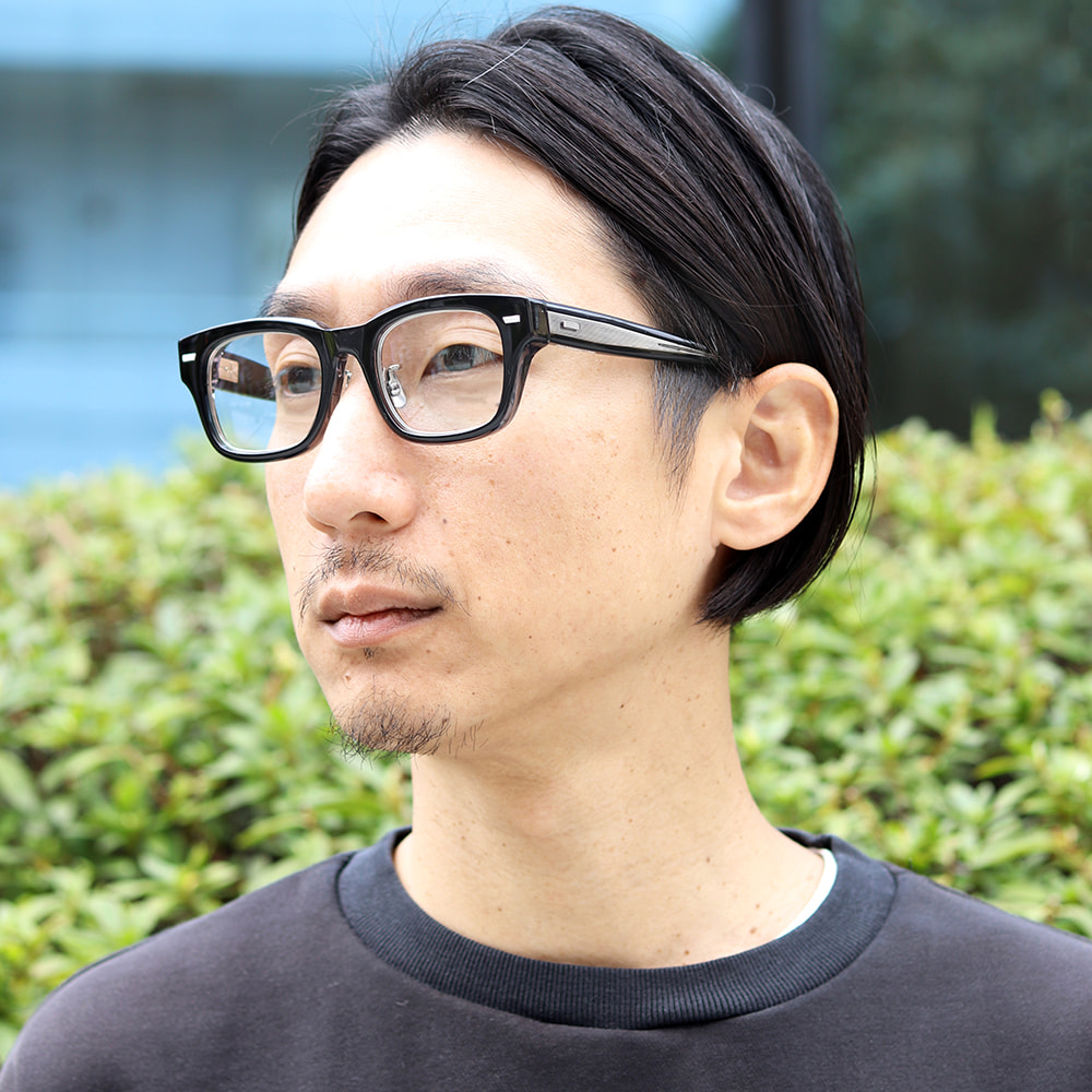 重厚感あるフロントとテンプルのオールアセテートフレーム。