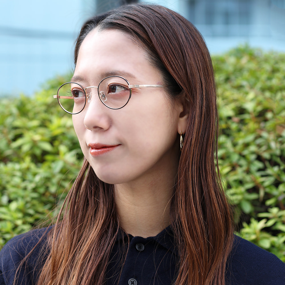 すっきりとした佇まいのシンプルなオーバルシェイプメタルフレーム。