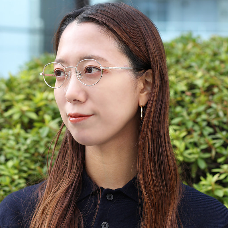 すっきりとした佇まいのシンプルなオーバルシェイプメタルフレーム。