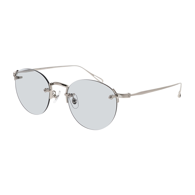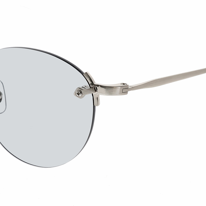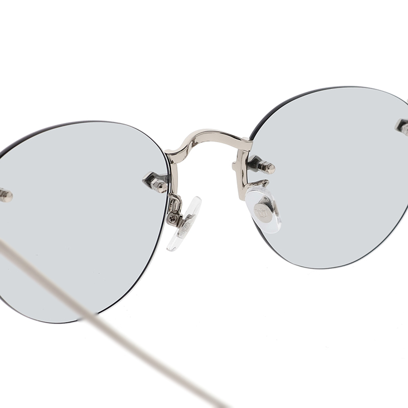 クラシックなレンズシェイプのリムレスサングラス。