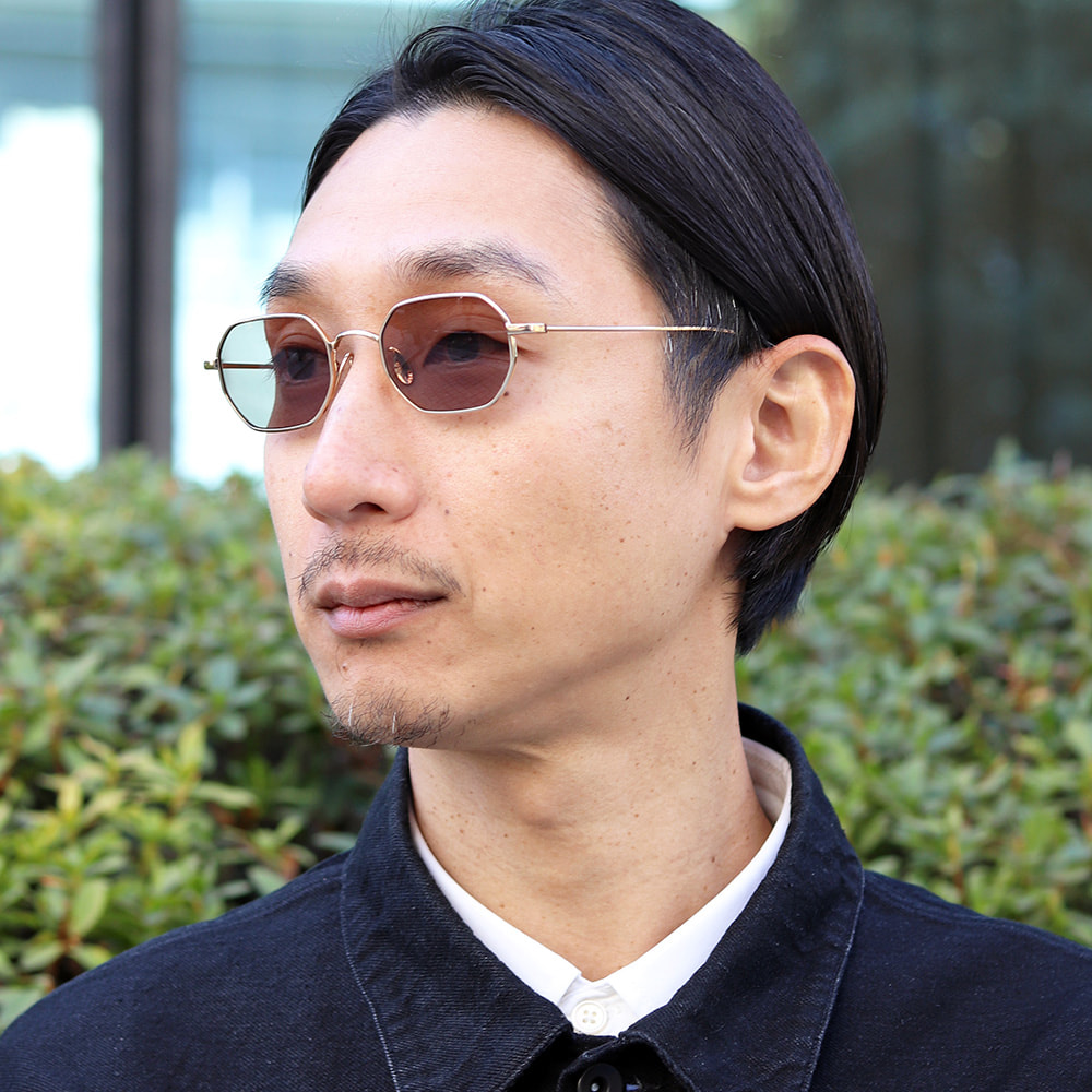 ビンテージフレームに見られるオクタゴンシェイプをベースに立体的なプレスを施したシートメタルサングラス。