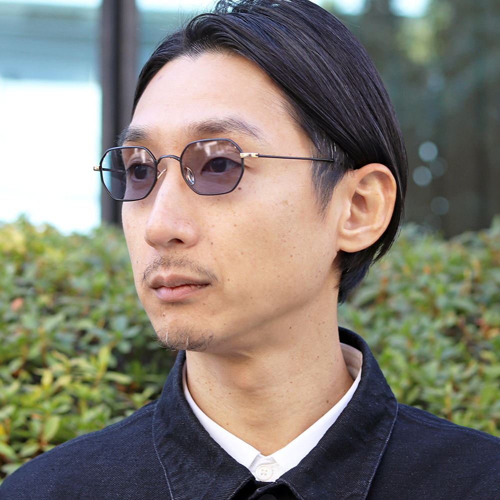 ビンテージフレームに見られるオクタゴンシェイプをベースに立体的なプレスを施したシートメタルサングラス。