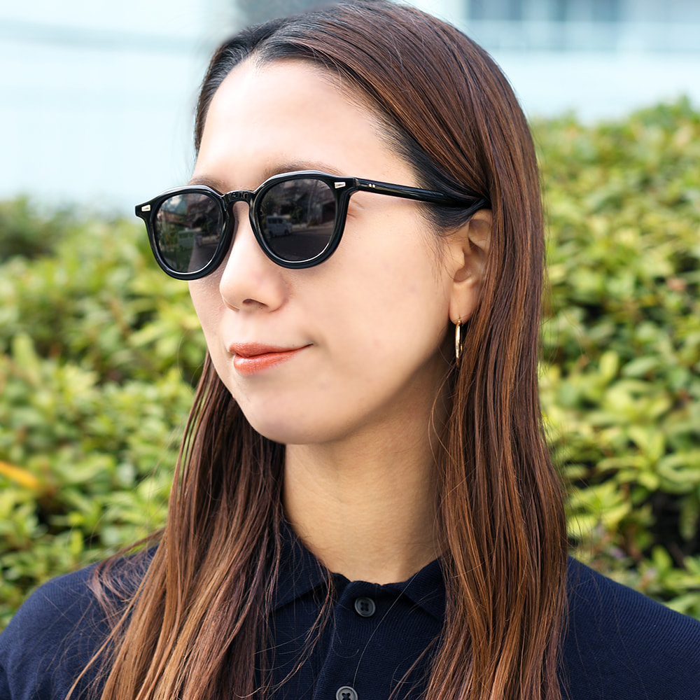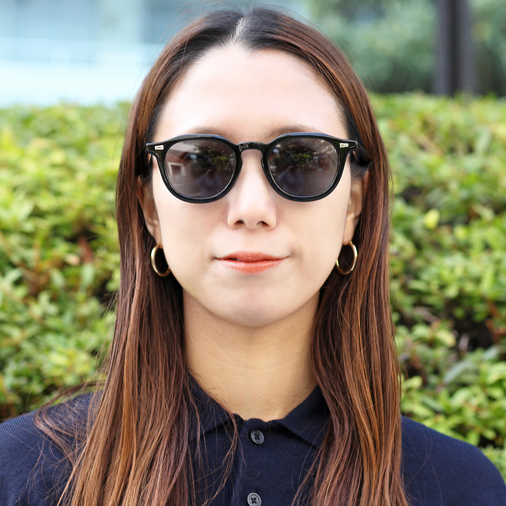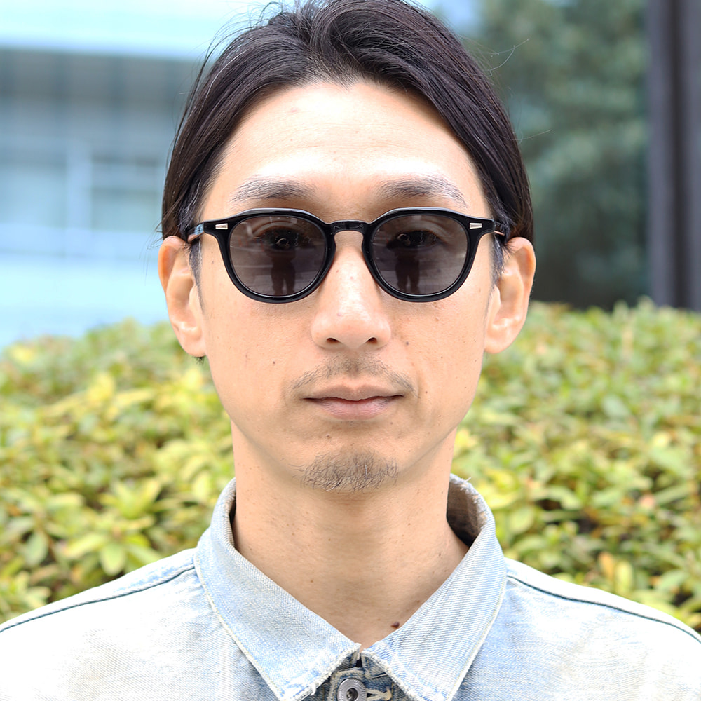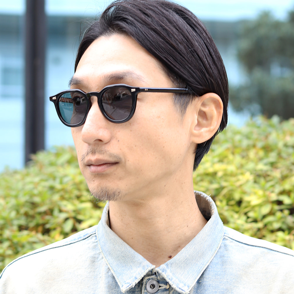 ウェリントンとクラウンパントの中間的なレンズシェイプとホーンリムを融合させたサングラス。