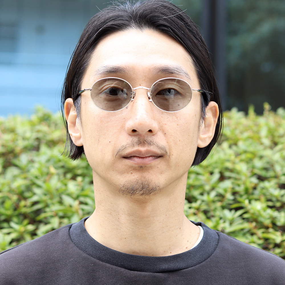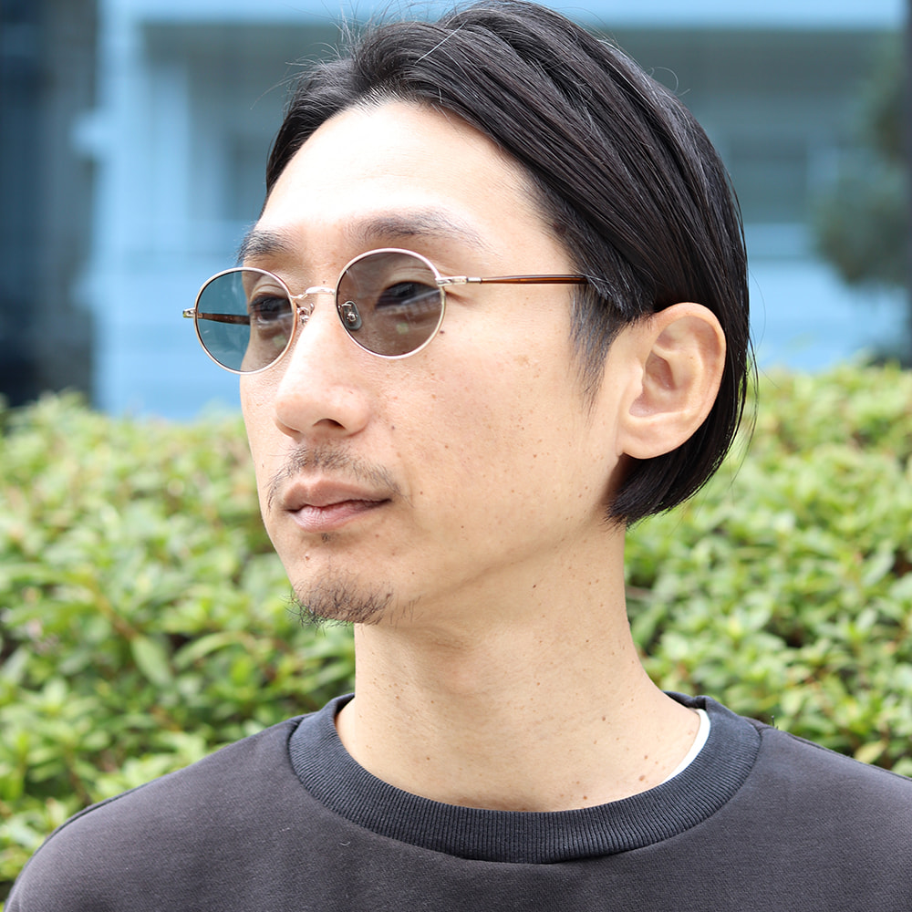 全体的に細身で柔らかな印象のオーバルシェイプサングラス。