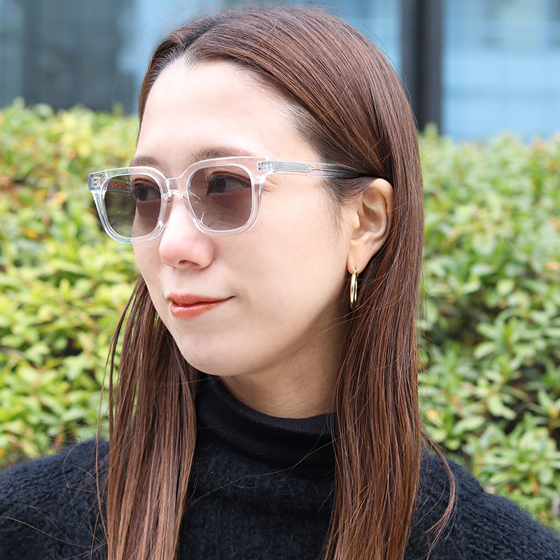 顔馴染みがよいスクエアシェイプのアセテートサングラス。