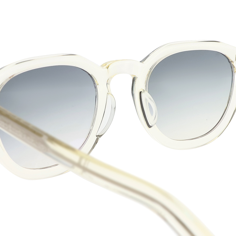 ウェリントンとクラウンパントの中間的なレンズシェイプとホーンリムを融合させたサングラス。