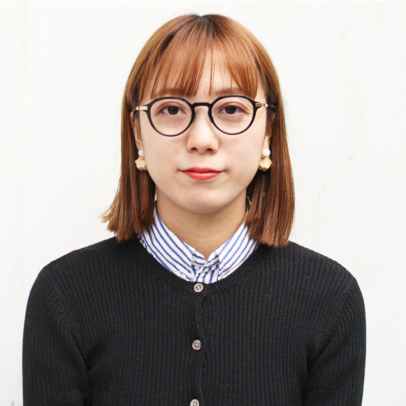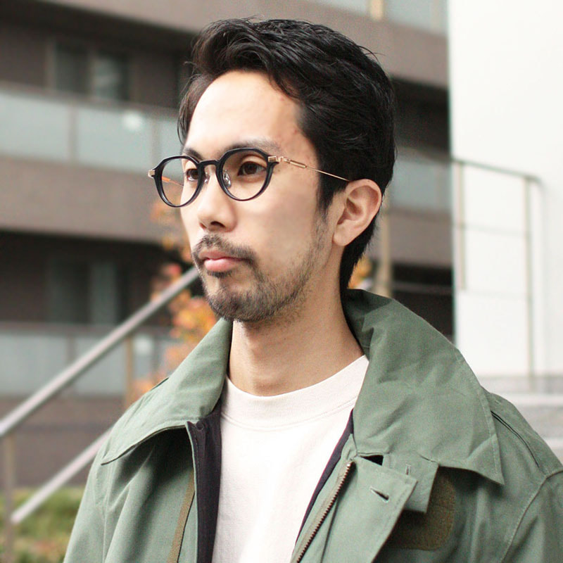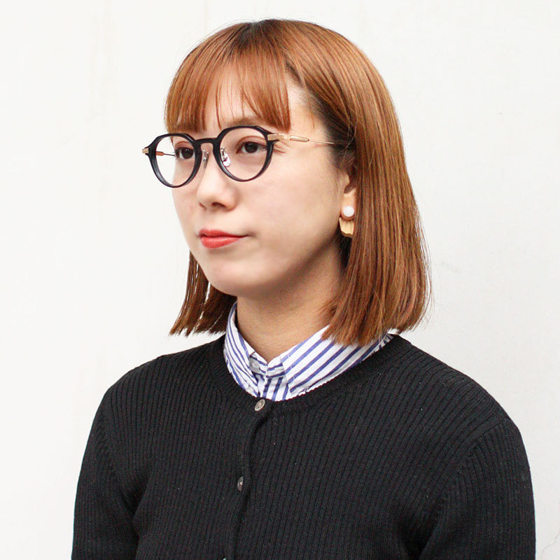繊細さを感じさせるクラウンパント型プラスチックフレーム。男女問わずかけられる1本。