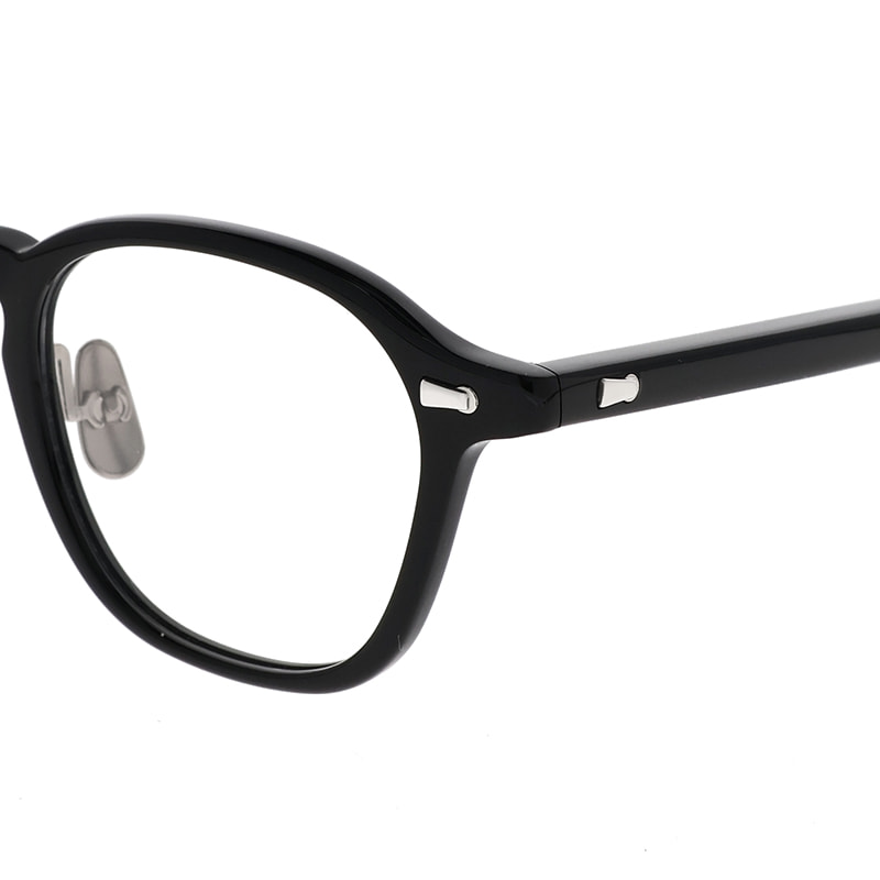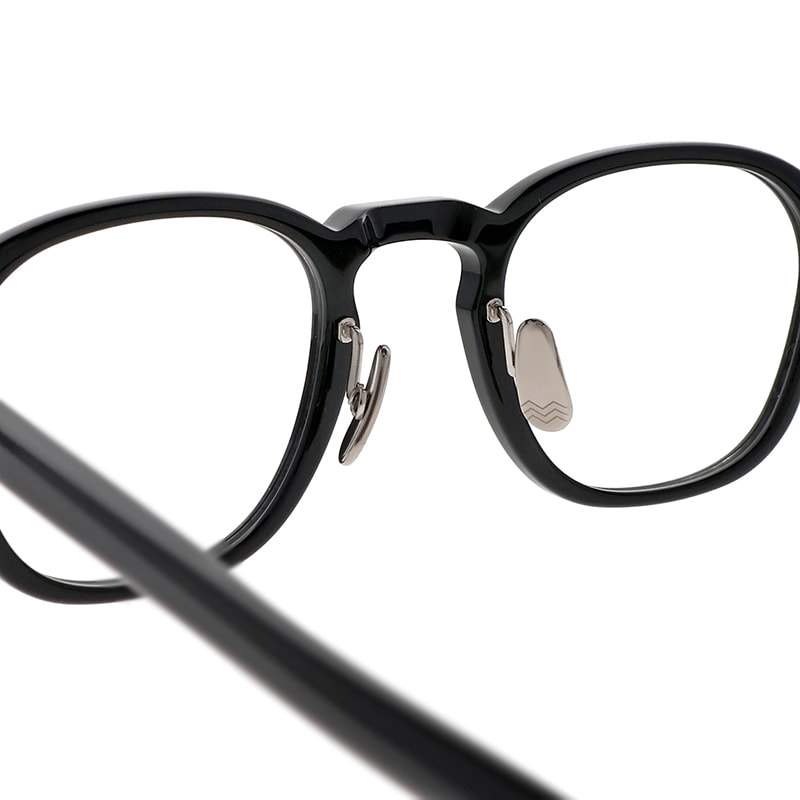 カシメ飾りに使用する金属パーツに合わせて、丁番、チタンノーズパッド、ブランドロゴまでを同じカラーに仕上げています。アセテート生地と金属のカラーリングによる多彩な組み合わせはMAINの魅力のひとつ。