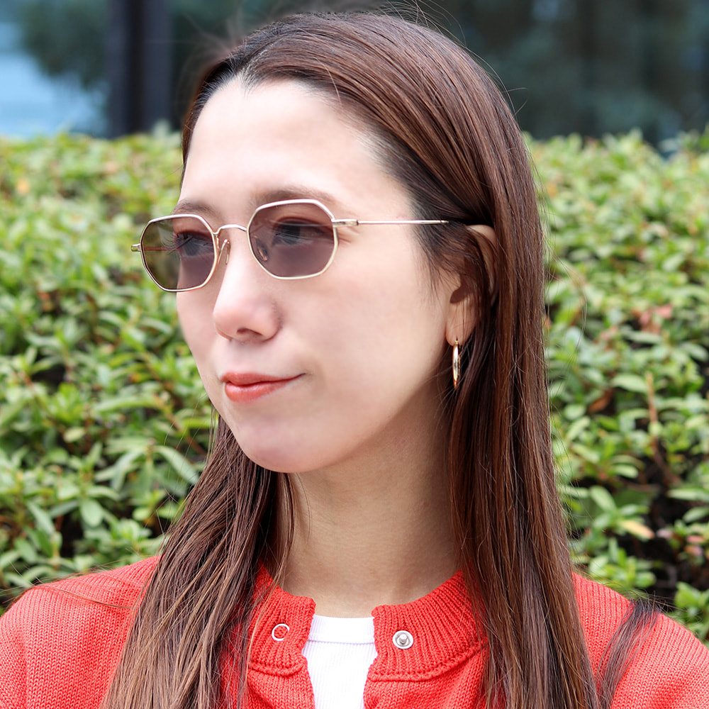 ビンテージフレームに見られるオクタゴンシェイプをベースに立体的なプレスを施したシートメタルサングラス。